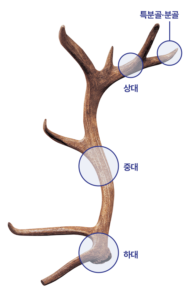 녹용의 중간부분으로 윗부분의 조직은 부드러우나 하대 쪽으로 내려갈수록 딱딱해집니다.