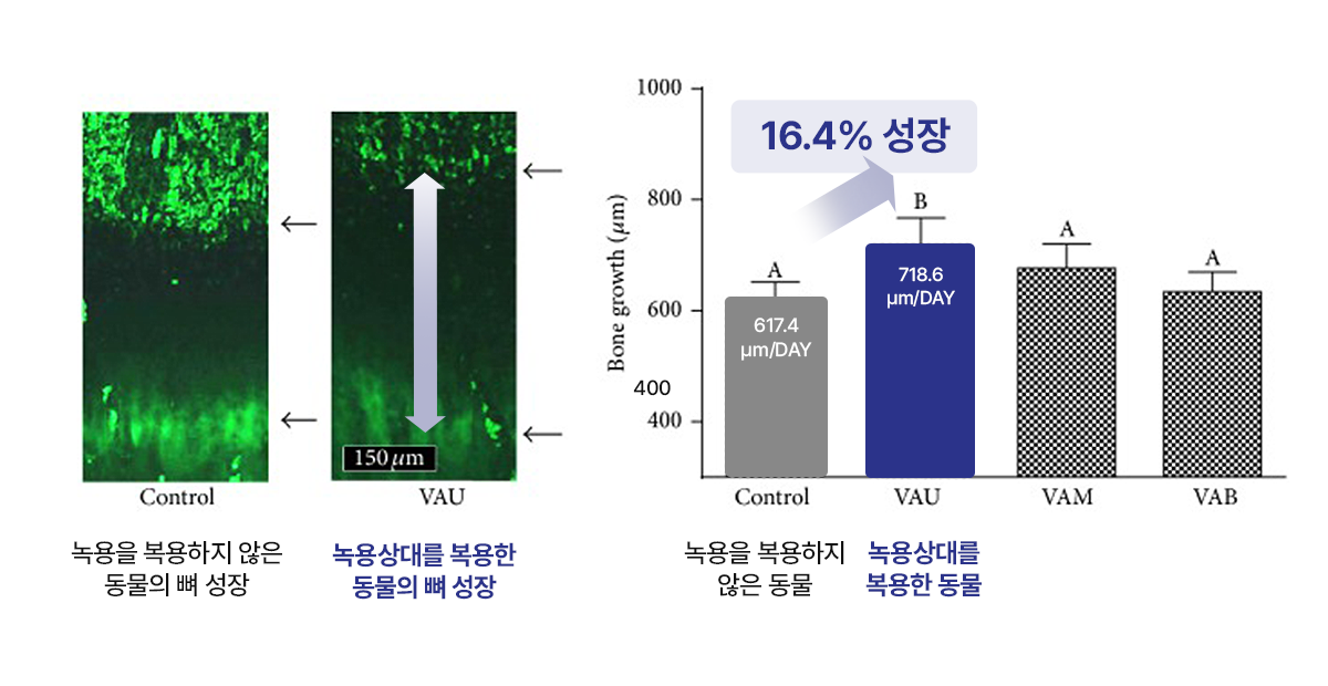골수 조직 자극으로 조혈 작용 및 연골세포 분화를 촉진하여 골밀도 증가와 성장에 도움을 줍니다.